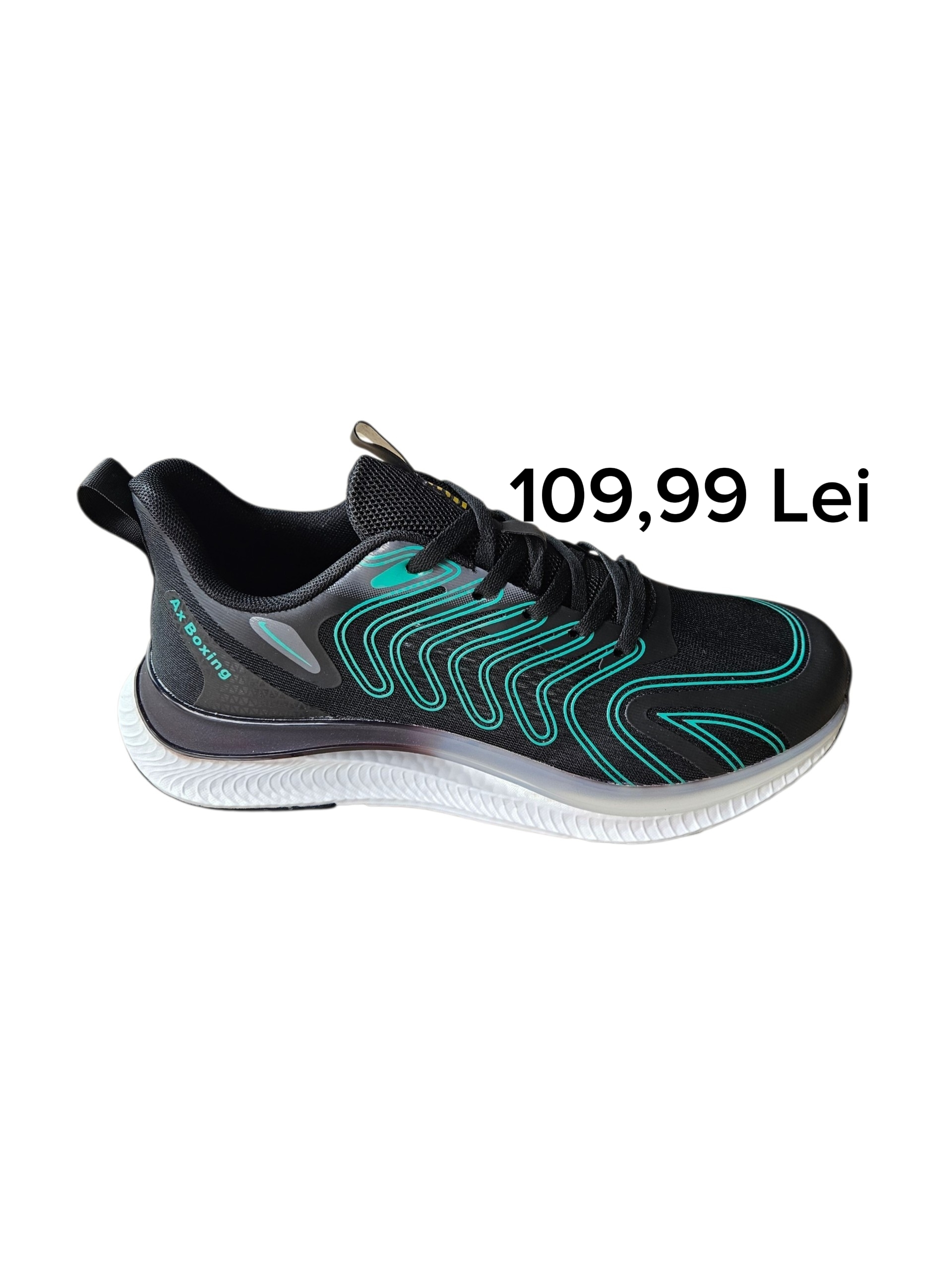 Adidas Ax Boxing 2845- 109,99 lei; model sport, grafic modern cu linii ondulate turcoaz pe fond negru, talpa flexibila din spuma, material respirabil, marimi disponibile de la 40-45