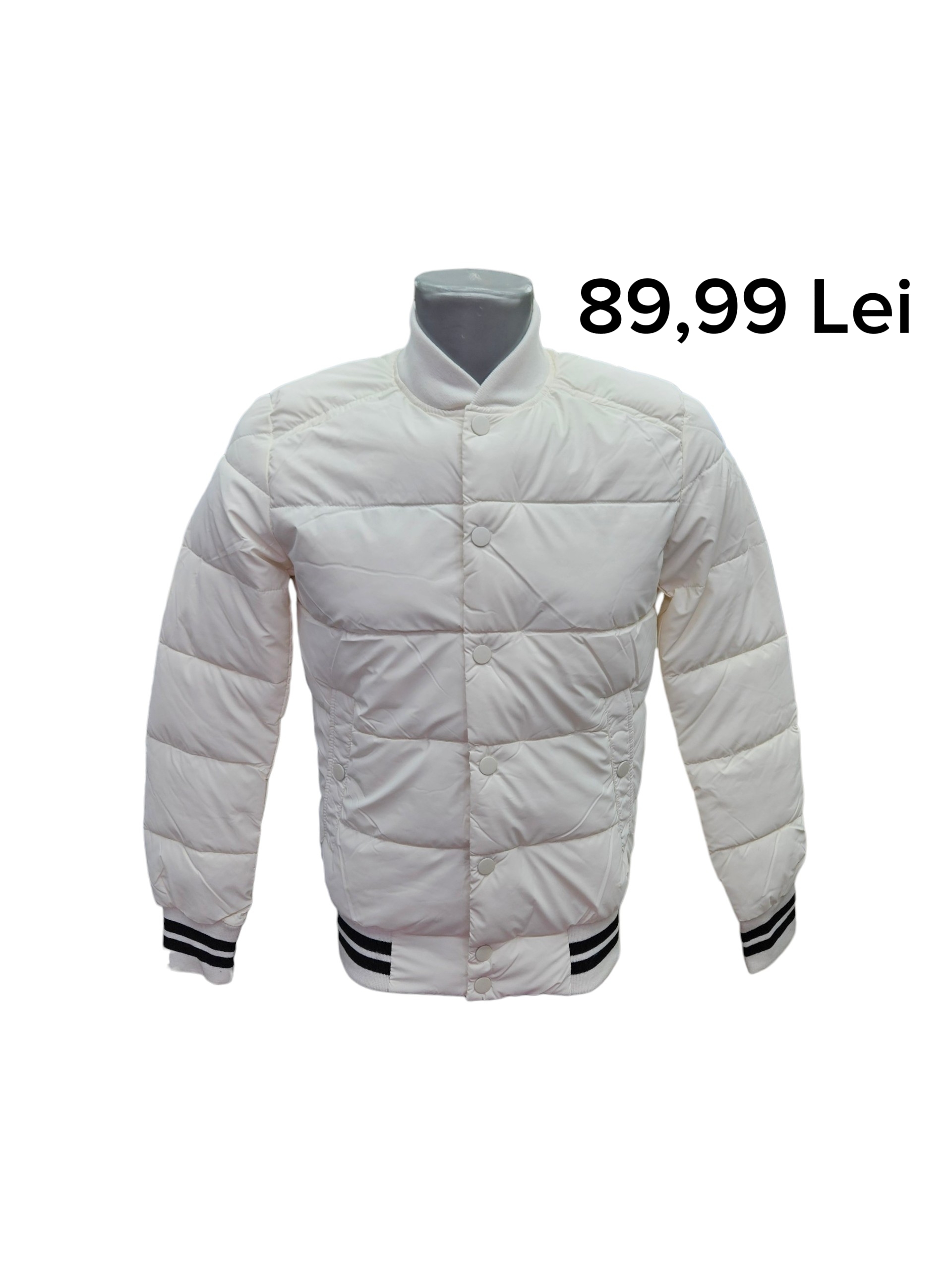 MAXX Grup Bacau > Geci > Clasice > Geaca Feifa- 89,99 lei; matlasata, cu dungi negre la mansete si talie, cu fermoar si capse, guler inalt, fara gluga, marimi disponibile de la S-2XL