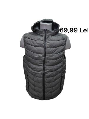 Vesta Feifa-( de la 139,99 lei) la 69,99 lei); model matlasat din material moale si confortabil, gluga detasabila, 2 buzunare laterale cu fermoar, marimi disponibile de la S-2XL